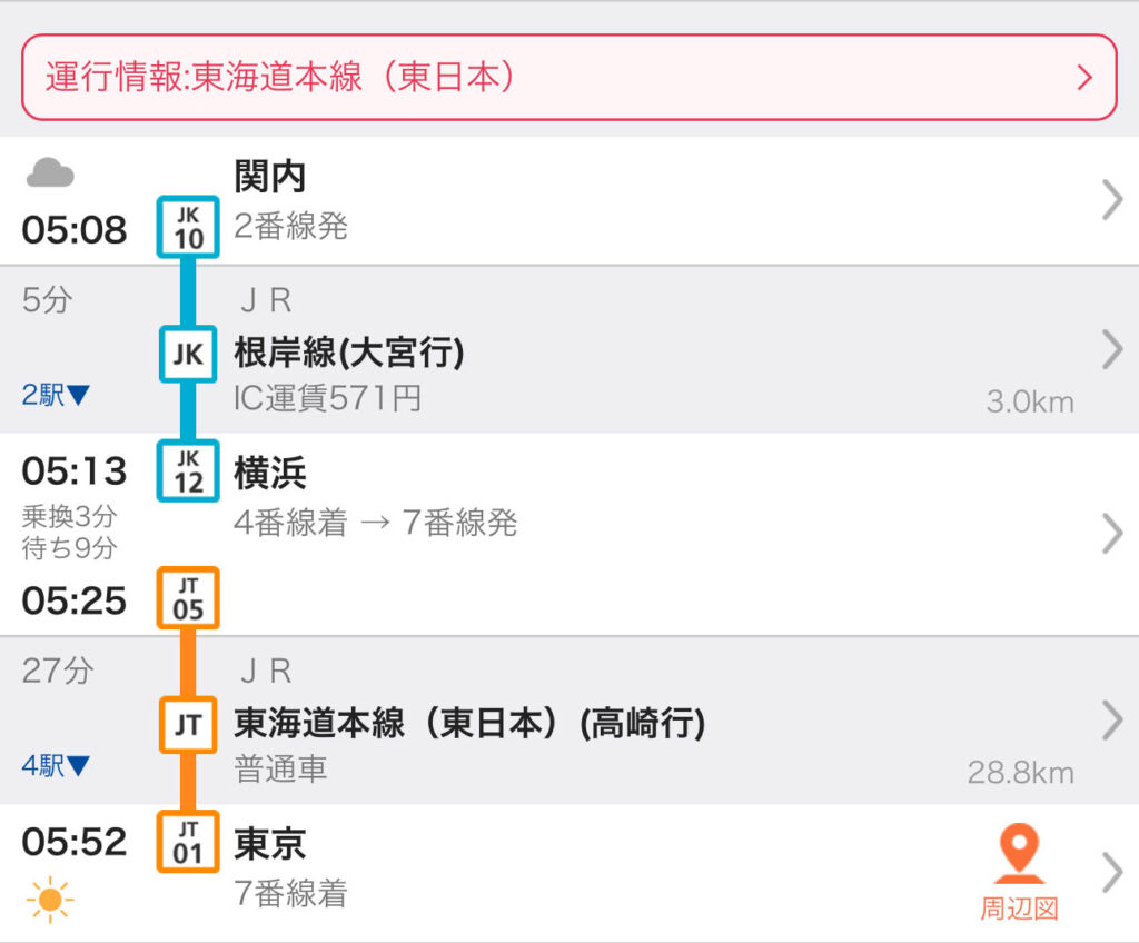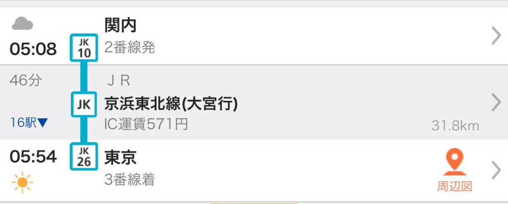 この時間であれば、各駅停車でゆっくりするほうが良さそうです。