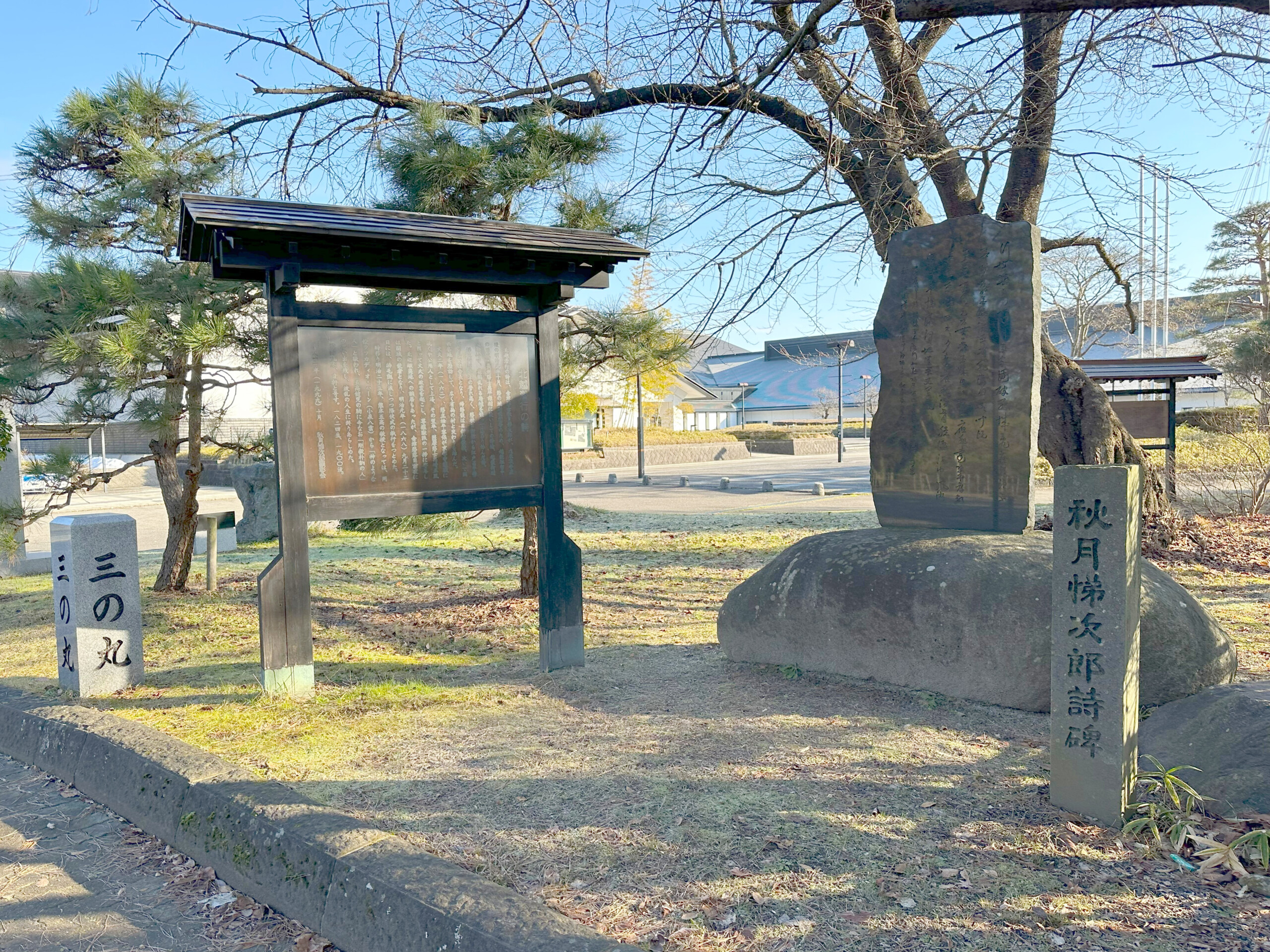 「詩碑」は、その秋月悌次郎さんが戊辰戦争敗戦直後の戦後処理に奔走する中で認めた詩、「勝てば官軍負ければ賊軍」と言われた戦いの戦後処理を進めていた当時の、やるせない内心を詩の形で吐露した「北越潜行の詩」を碑にしたもので、