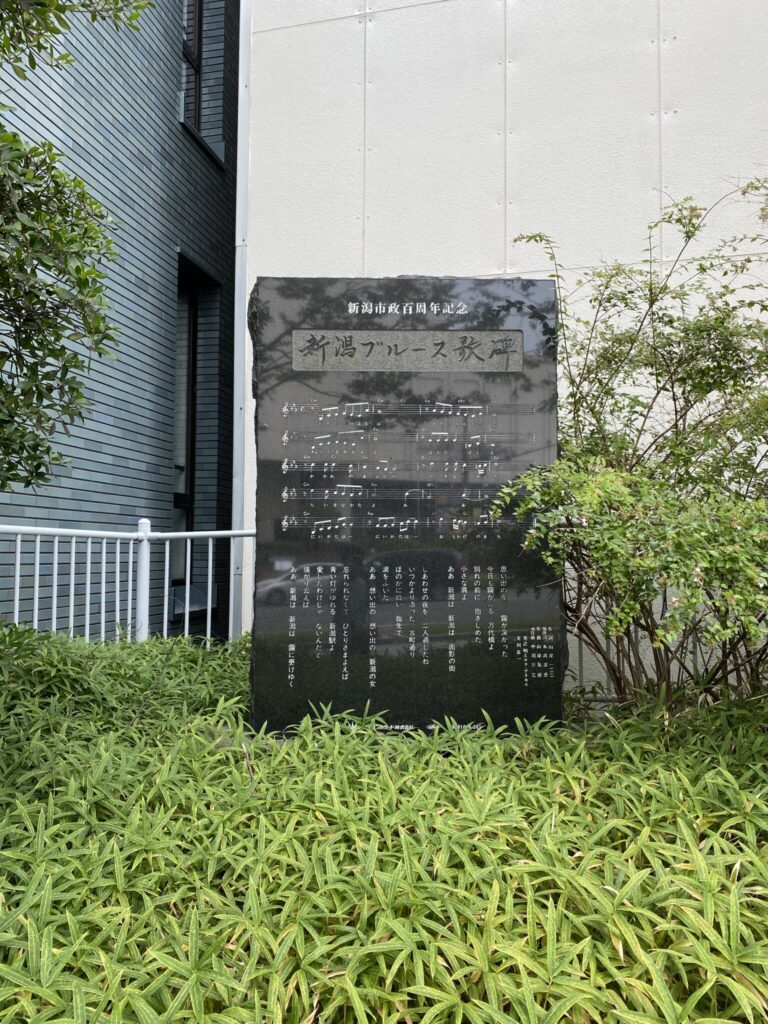 市制100周年を記念して作られた”新潟ブルース歌碑”(”新潟ブルース”は新潟出身の作詞家、山岸一二三さんの作詞です)や、