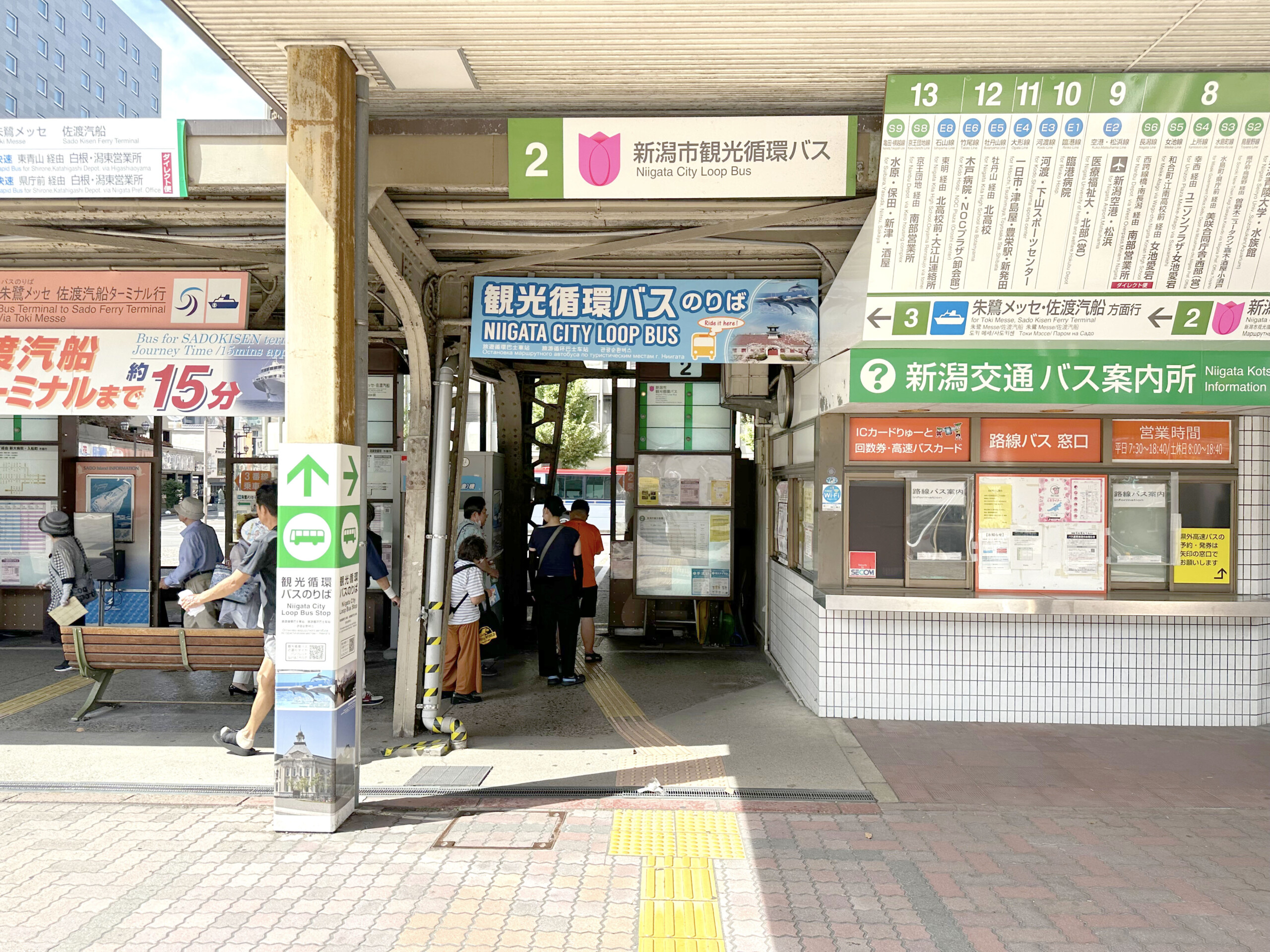 現在は、新潟駅バスターミナルの18番線乗り場が観光循環バス乗り場となっています。