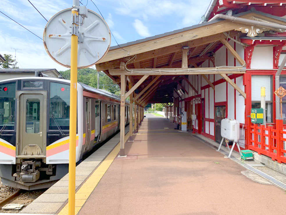そんな”弥彦神社のお膝元”駅ということからか、駅構内の雰囲気は既にそれを思わせるものとなっているのですが、実際この駅舎があることによって、弥彦駅到着気分も上々なものとなります。
