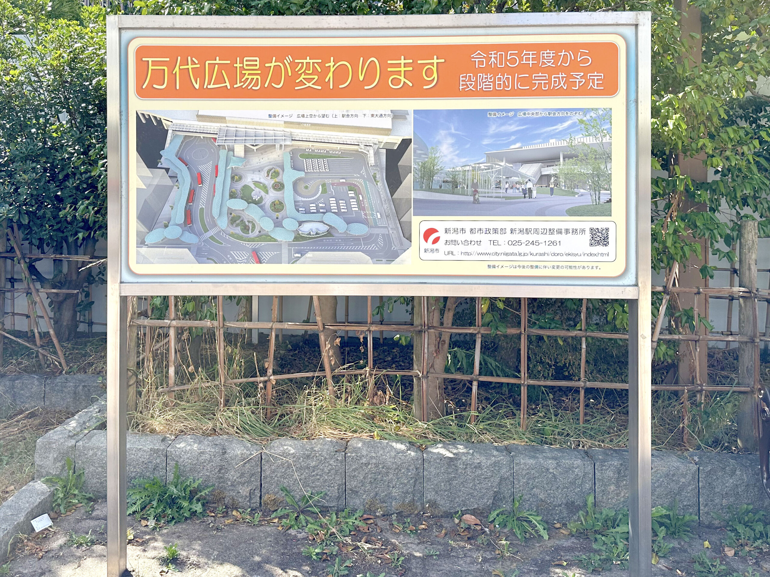 新潟駅前・万代広場は、周辺エリアと連動させる形の整備工事の真っ只中にありました。