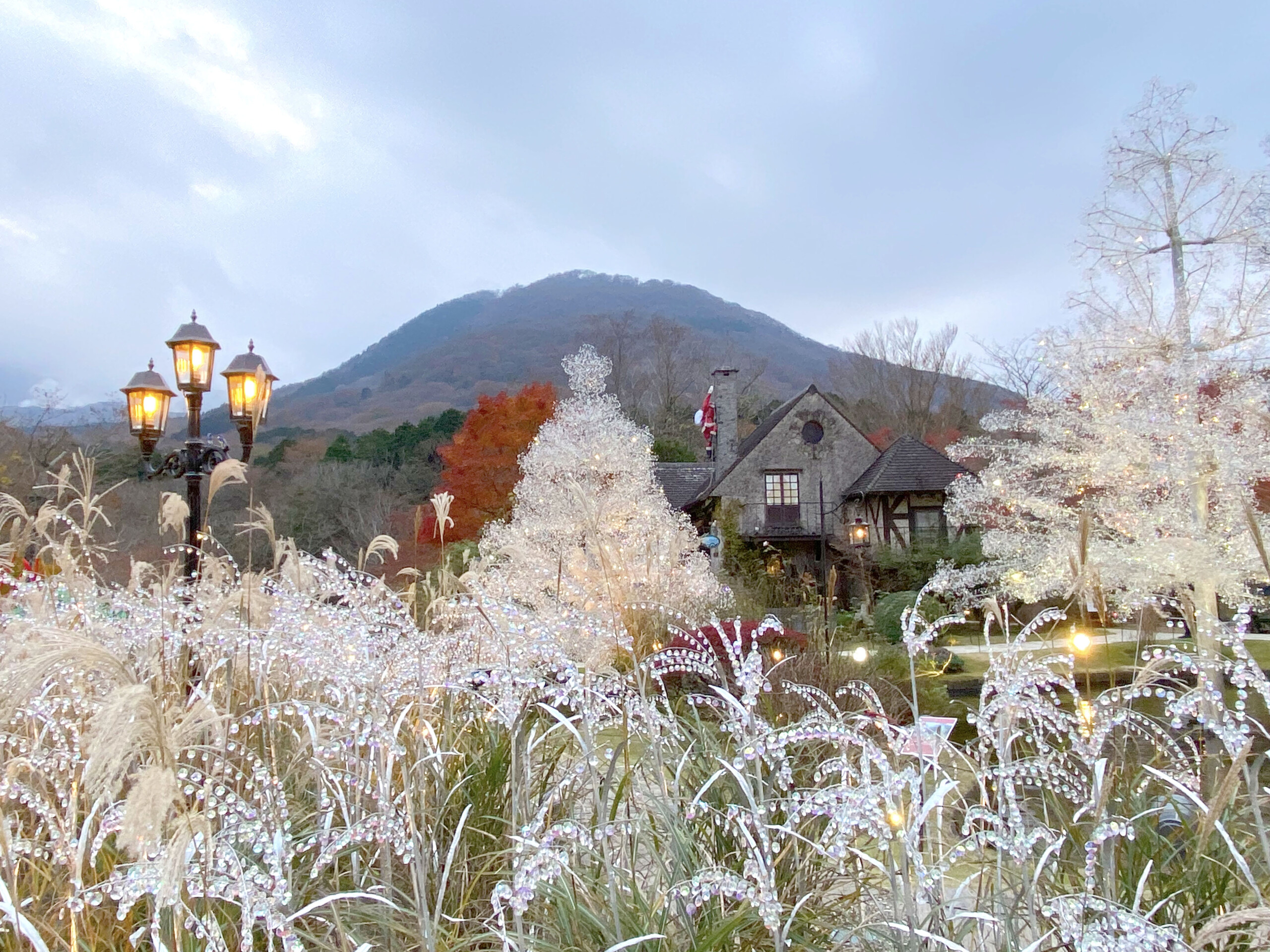晩秋のガラスの森美術館(公式サイト)では、庭園内にクリスタルガラスのススキが展示されています。