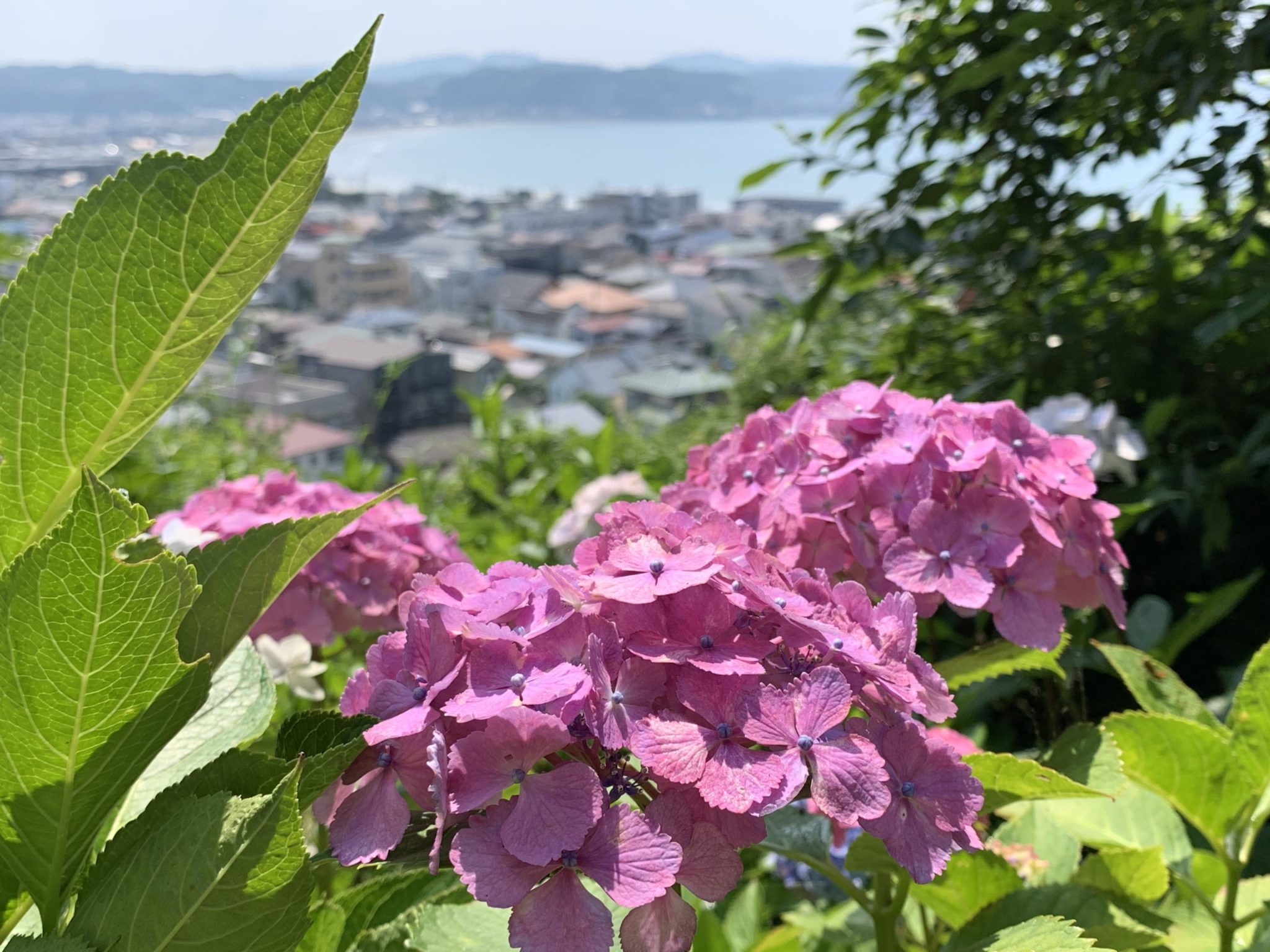 あじさい路のクライマックスは、最上部に来た時に、あじさいの向こうに臨める風景です。