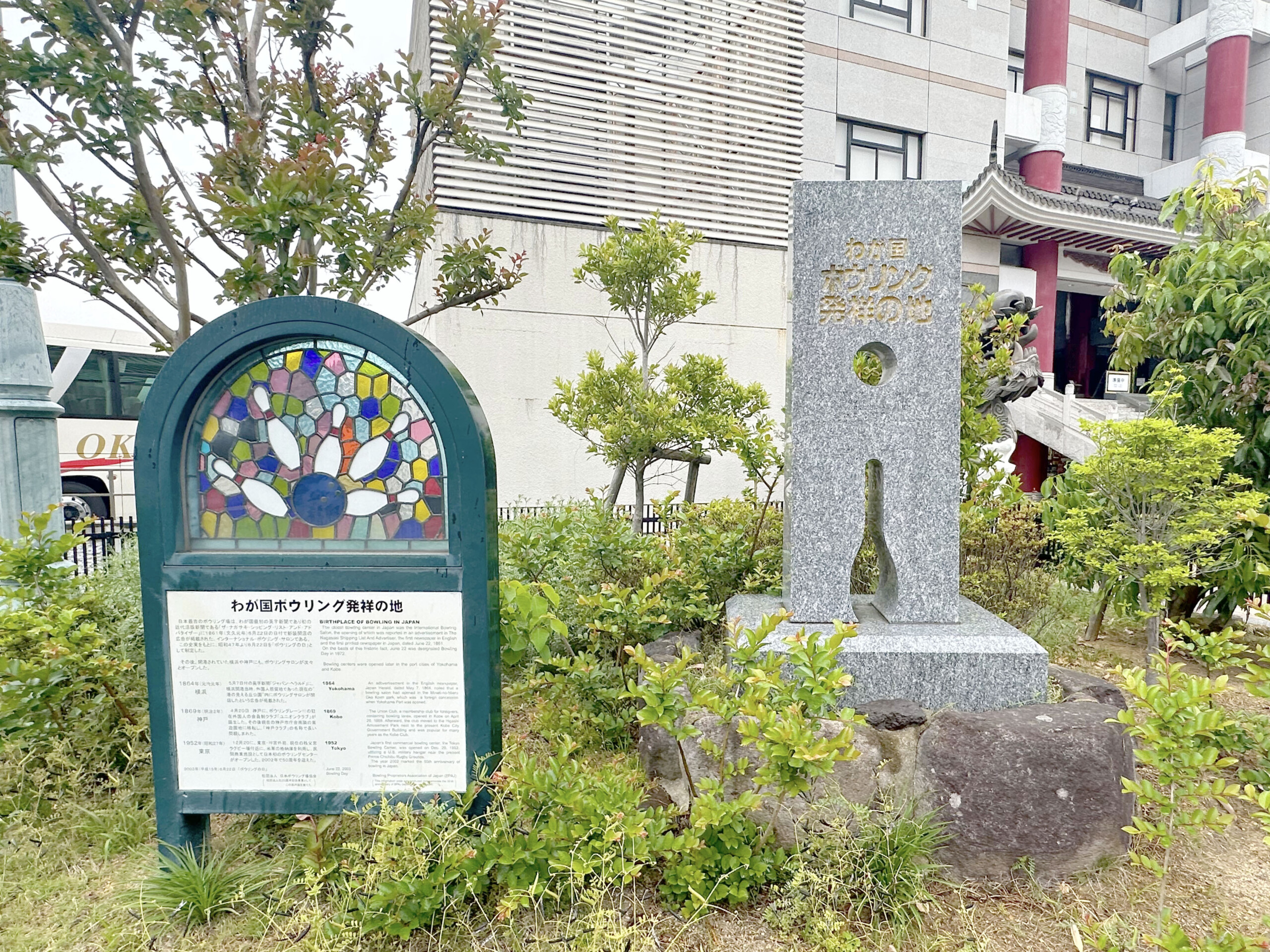 日本国ボウリング発祥の地=”わが国ボウリング発祥の地”を記念する碑が置かれているのは、