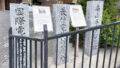 路面電車の大浦天主堂駅傍、”ちゃんぽん発祥店”である四海楼(石碑の背後で赤い柱を持つ建物がそうです)のすぐ前です。