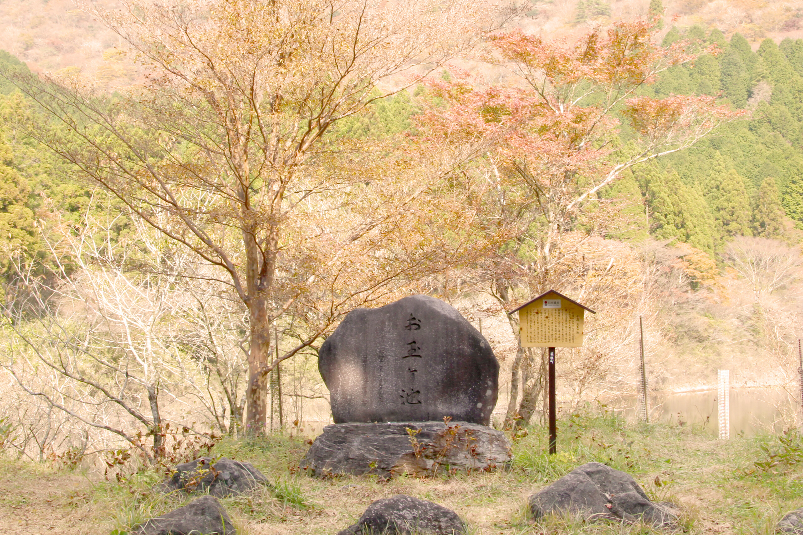 池への見晴らしがいい一帯に、”お玉が池”の石碑が置かれています。