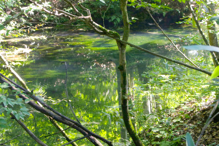 入り口から少し歩いて、龍ヶ窪の湧き水で出来た池に到着。