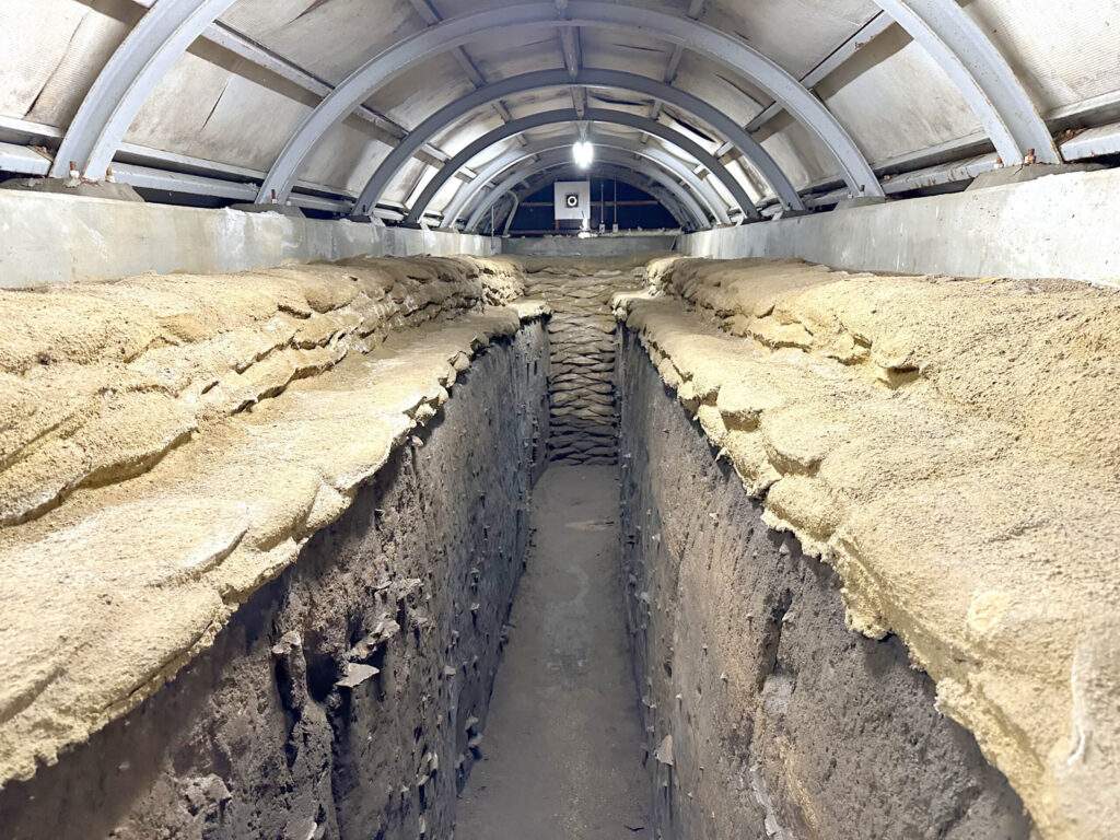 施設内では、盛土が掘り返された状態で保存されているので、