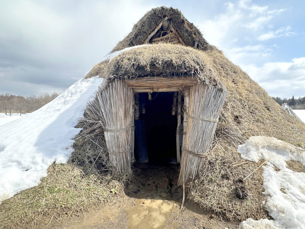 三内丸山遺跡では、三内丸山の集落がもっとも繁栄していた縄文時代中期中ごろ(約4800年前)の竪穴住居が復元されています。