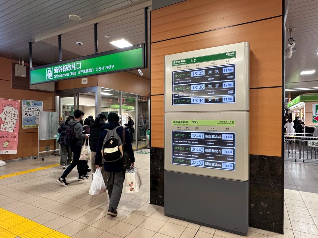 というのも、往路の終着駅となった青森駅では新幹線の混雑状況を確認してもらえるのみで、指定席券の購入は不可だったんですよね。こうなると、ほぼ時間ぴったりで接続してくれた奥羽本線が微妙に恨めしくも思えてくるのですが 笑、青森駅は新幹線の発着駅ではないためです。