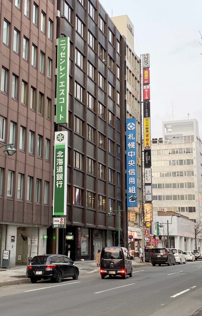 銀行・信組などの企業名に付く地名が北海道であり、札幌であるというあたりに加え、一方通行かつ大きめの通りがそこかしこに通されているあたりにも”らしさ”を感じました。