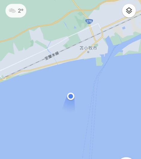 それから3時間40分後には、苫小牧沖へ到達しました。