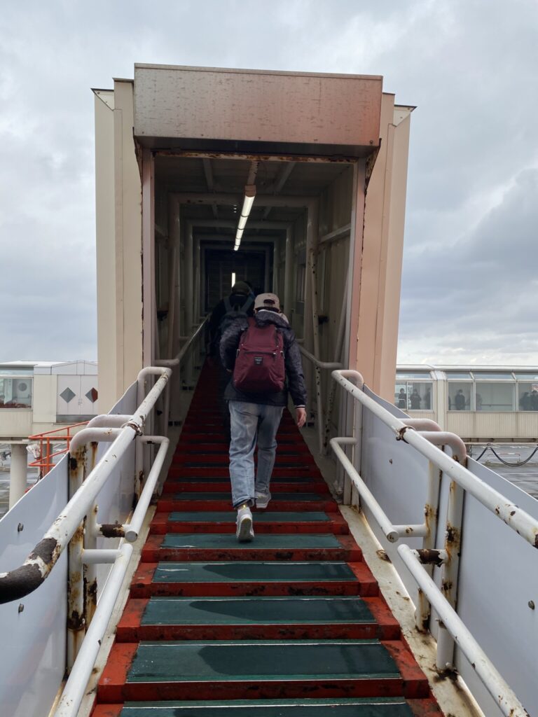 港の出口へは、先ほどまで乗船していたさんふらわあ号を眺めながらの移動となりました。