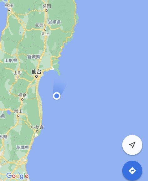 午前0時の時点では、フェリーは宮城県沖を北上していました。