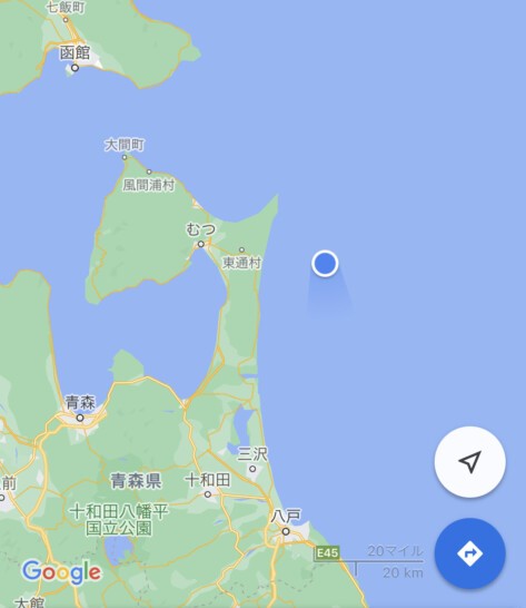 朝9時過ぎの時点で、フェリーは青森・下北半島付近へ。