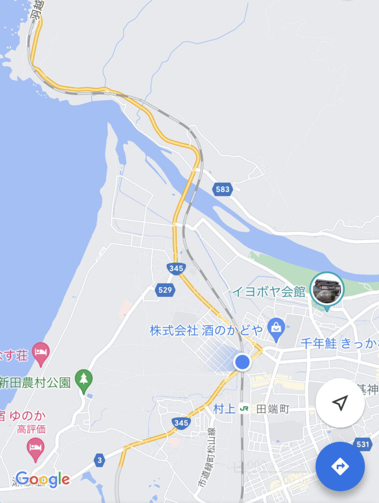 村上地方に鮭の恵みをもたらした、村上の文化とは切っても切れない縁を持つ三面川(三面川鮭産漁業協同組合公式サイト)を超えると、電車は日本海側へ。