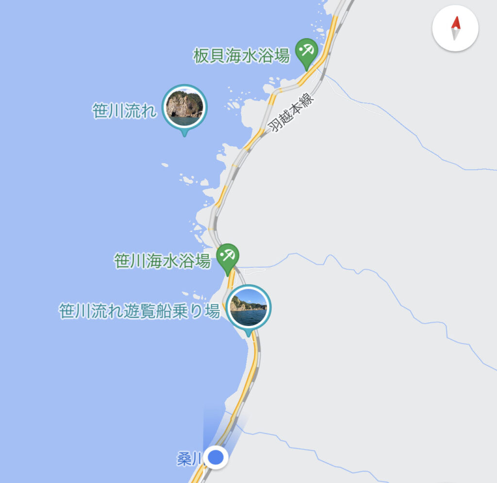 村上駅から三つ目の駅である桑川駅の先に、国によって名勝・天然記念物に指定されているという景勝地、“笹川流れ”(村上市公式サイト、村上市観光協会公式サイト、文化庁データベース)があります。