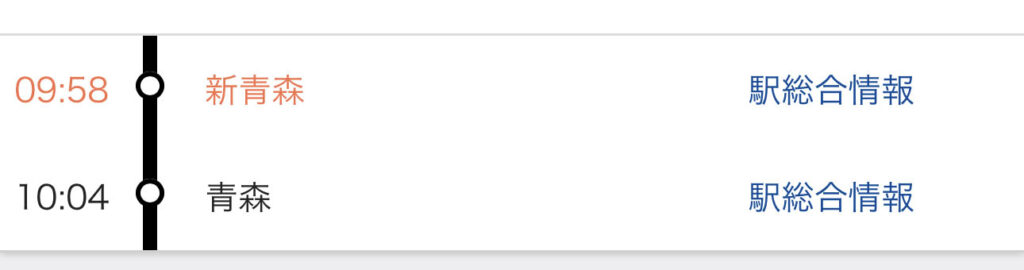 新青森駅着が9時52分だったことに対して、乗り継ぎの奥羽本線は9時58分発、とあります。