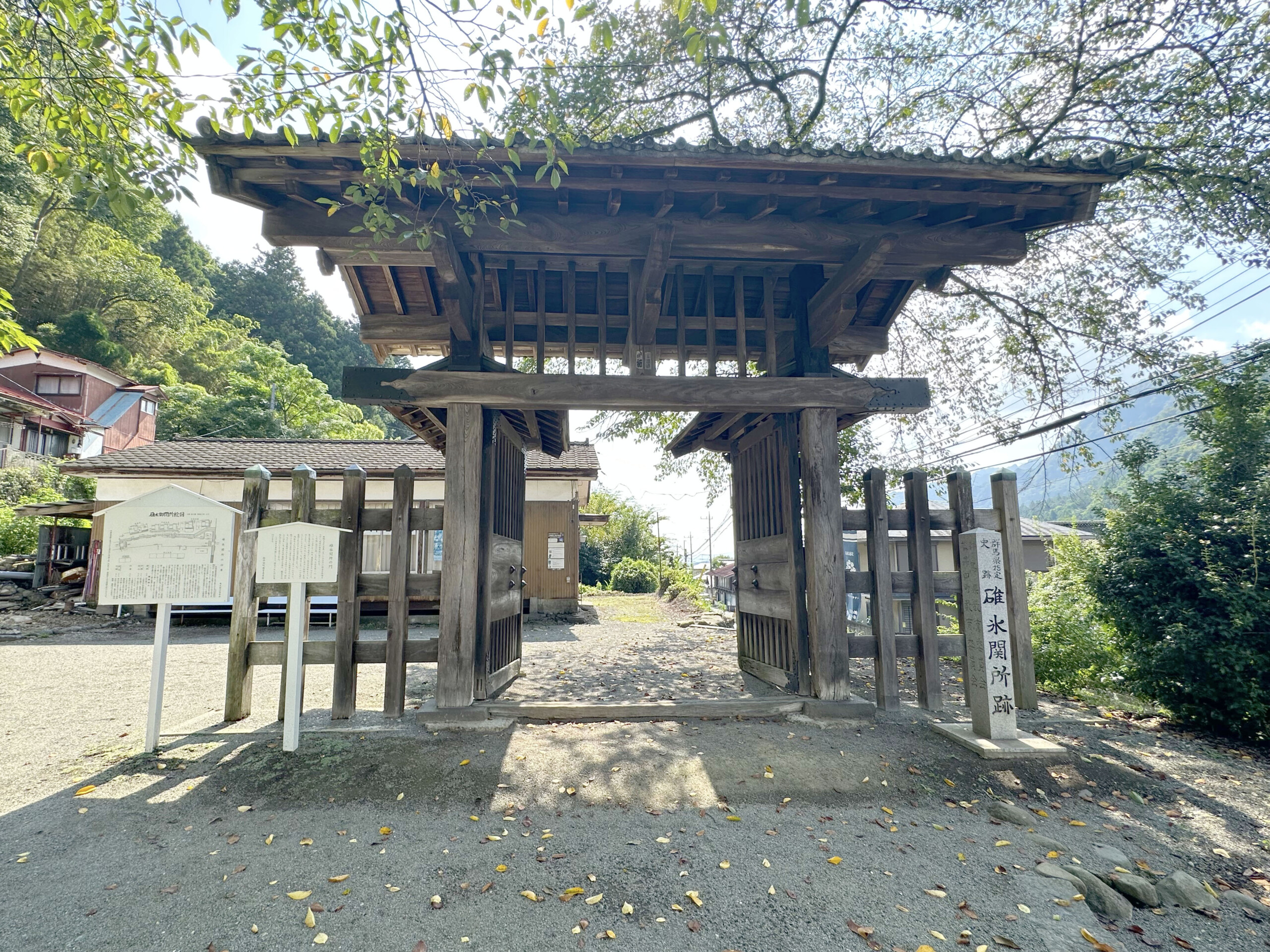 横川駅とは反対方向に作られた階段の前に立つと、敷地内の関所の門が真正面に見えます。