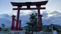 実は前日の夕食後にも一度鳥居をくぐって参道を途中まで歩いてみたのですが、中はほぼ真っ暗でした。